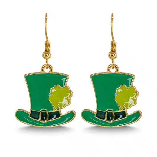 Gold Enamel Leprechan Hat Earrings
