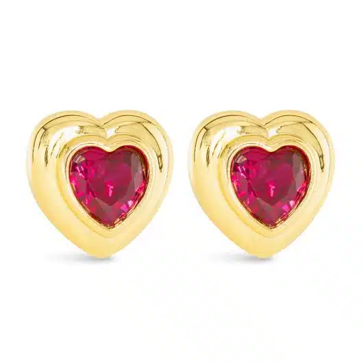 Gold CZ Pink Heart Bezel Stud Earring