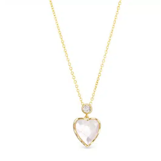 CZ Mother of Pearl Mosaic Heart Necklace- Gold