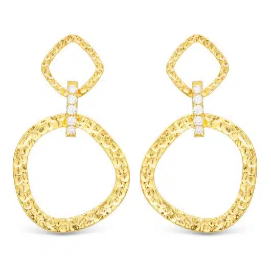 Sydney Polished Hammered Drop w/ white CZ Link Gold Earrings