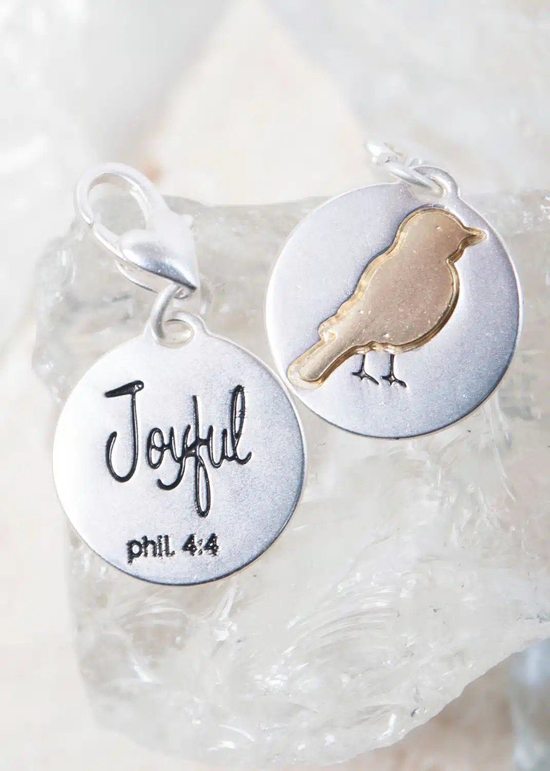 Silver 2-Tone Medallion – Songbird “Rejoice Always”