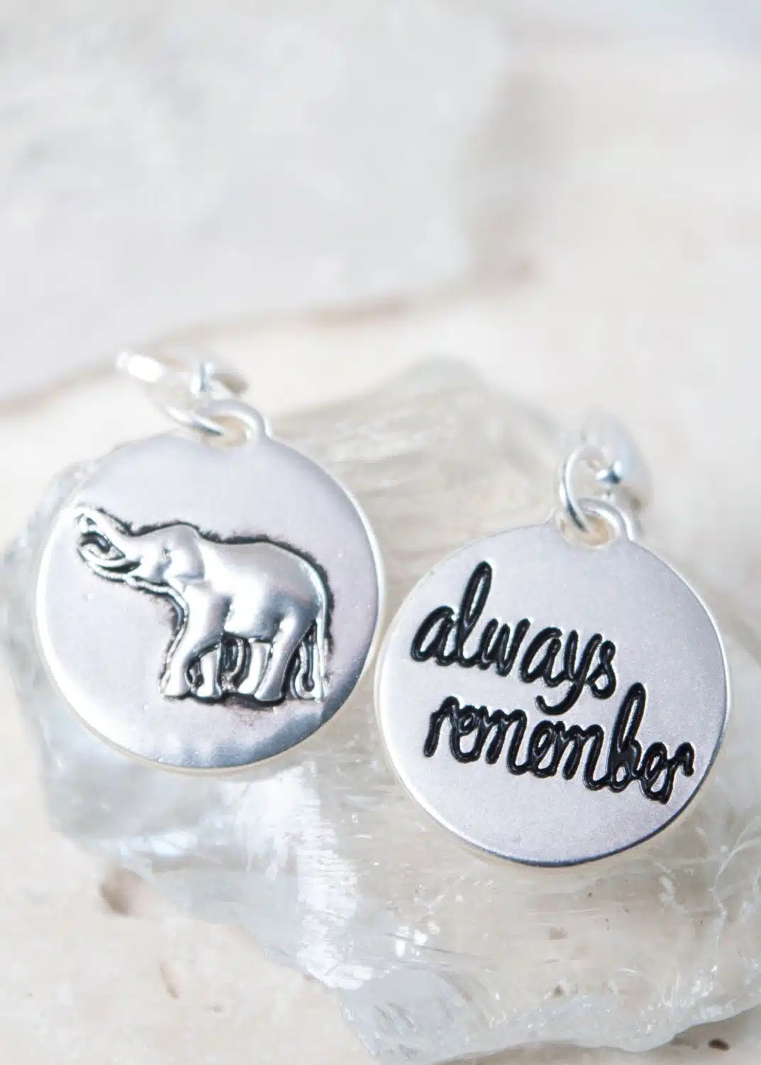 Silver 1-Tone Medallion – Elephant “Never Forgotten”