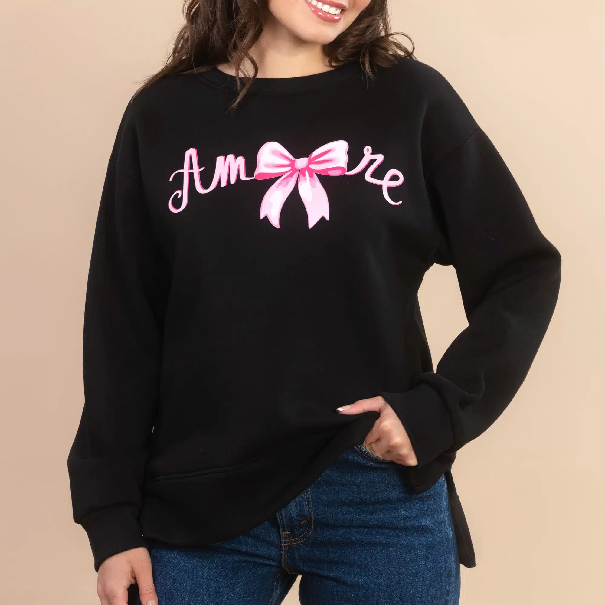 Amore Bow | Women’s Black Valentine’s Day Fleece