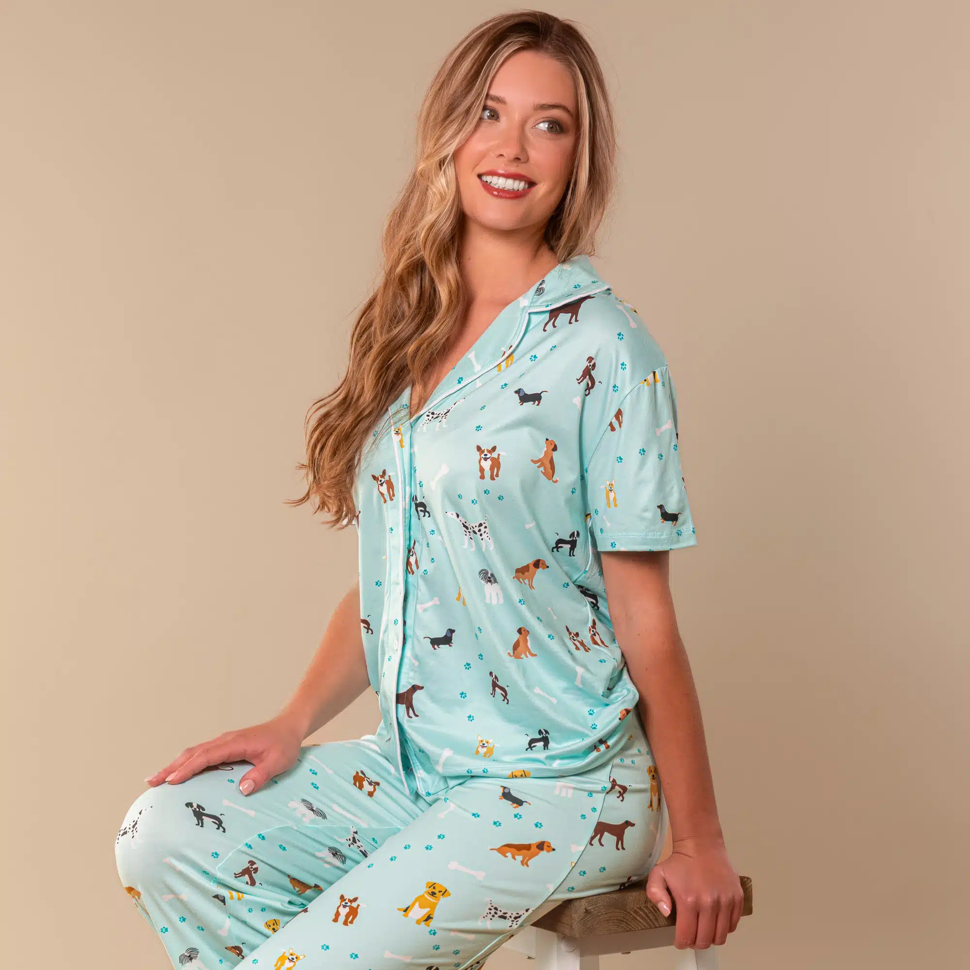 Lounge in comfort with our fetching ‘Bark At the Park’ pajama top, celebrating our furry best friends! This top makes a wonderful gift for any devoted dog mom.