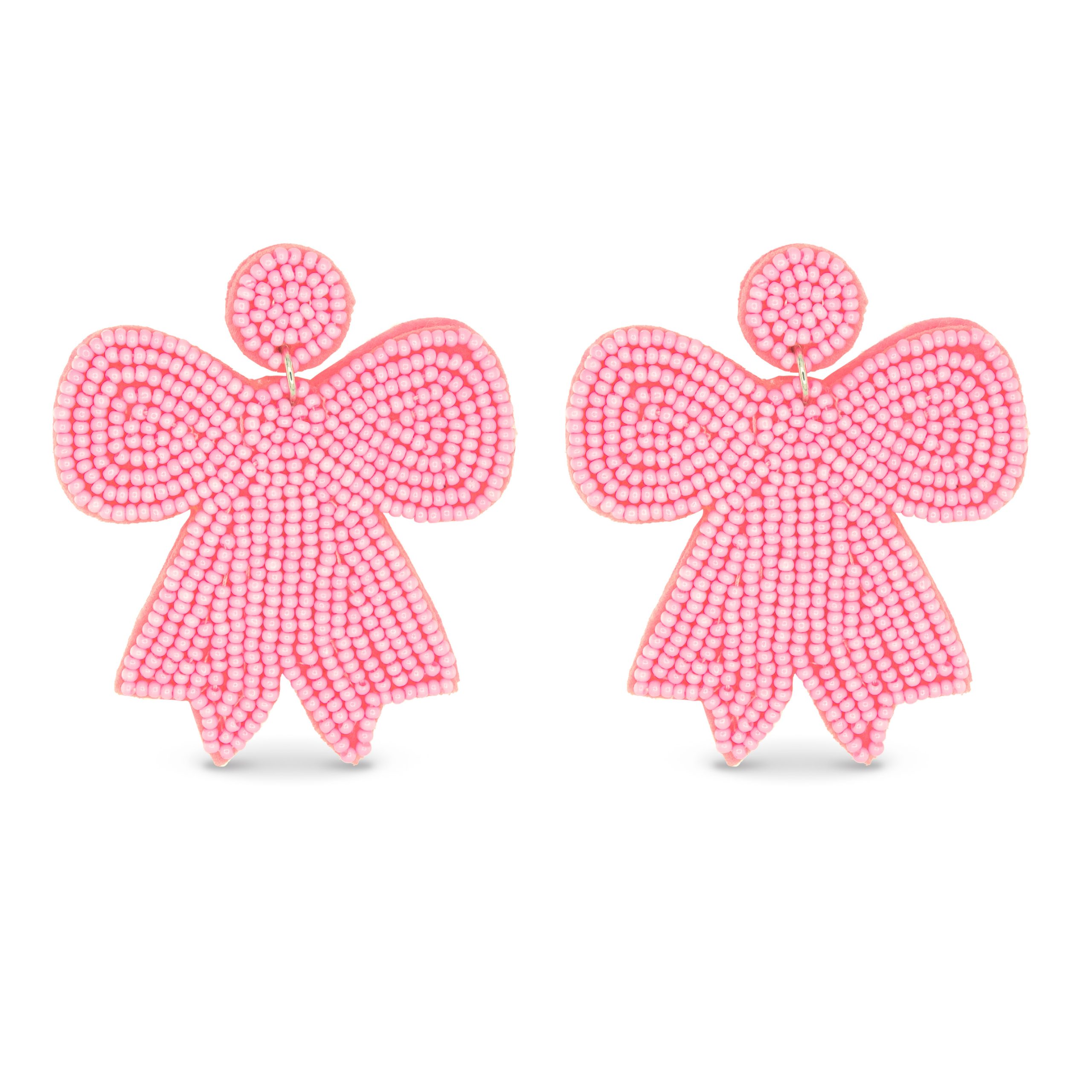 Add a sweet and feminine touch to your look with these beaded pink bow earrings.