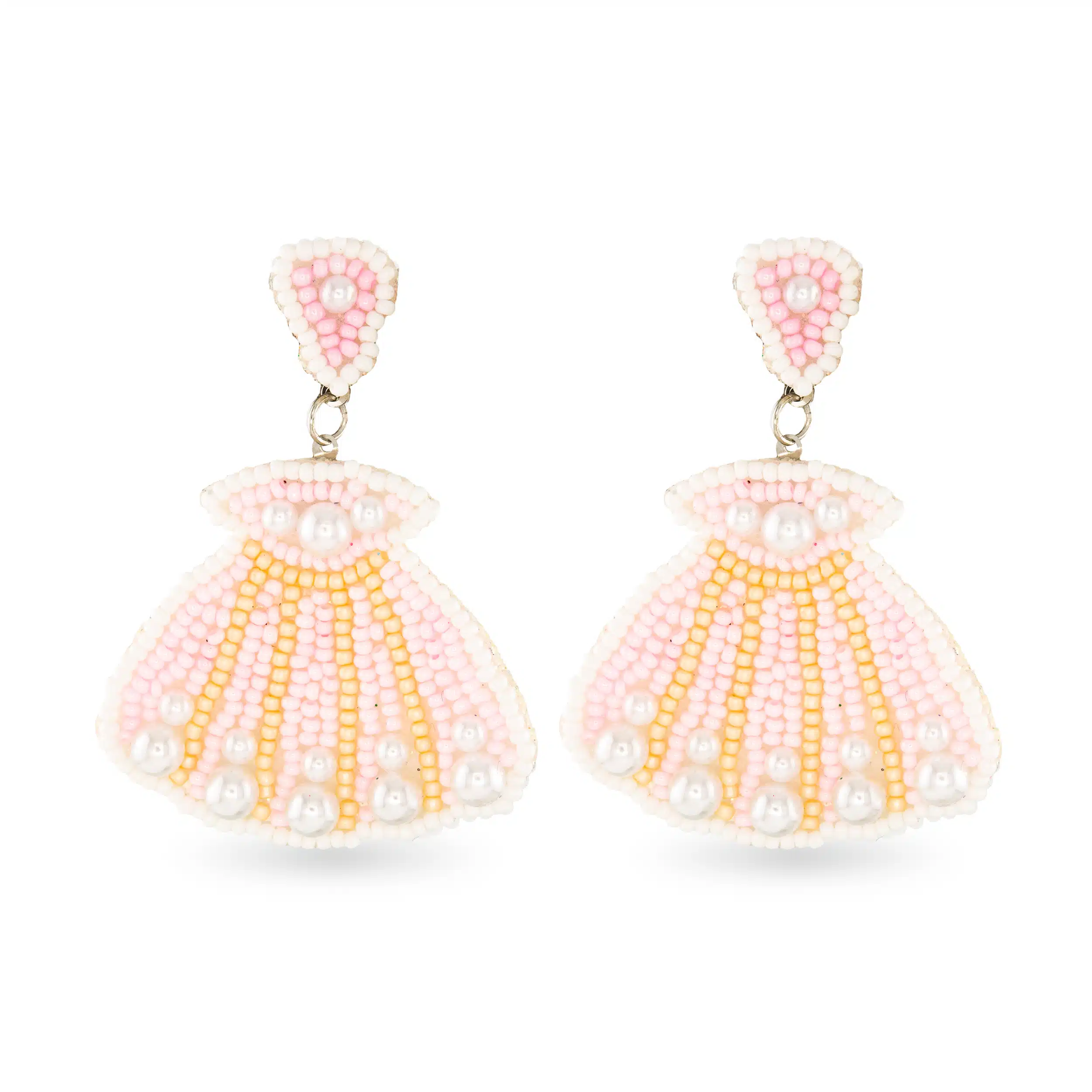 These adorable beaded pink seashell earrings are a perfect accessory for a day at the beach.