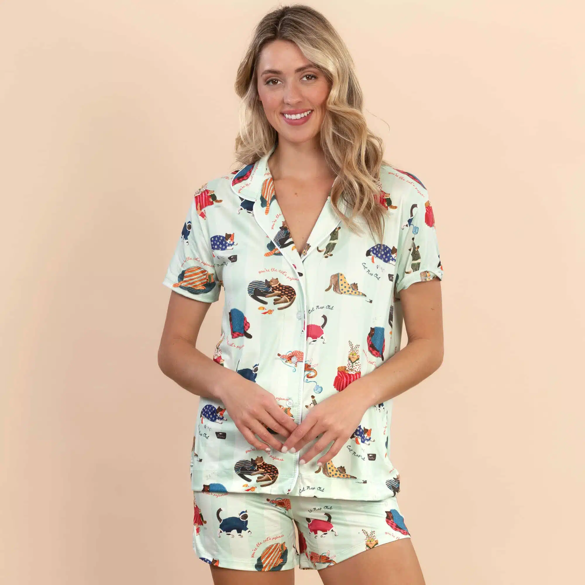 Stay playful and comfortable in our delightful ‘Cat Nap’ pajama shorts!