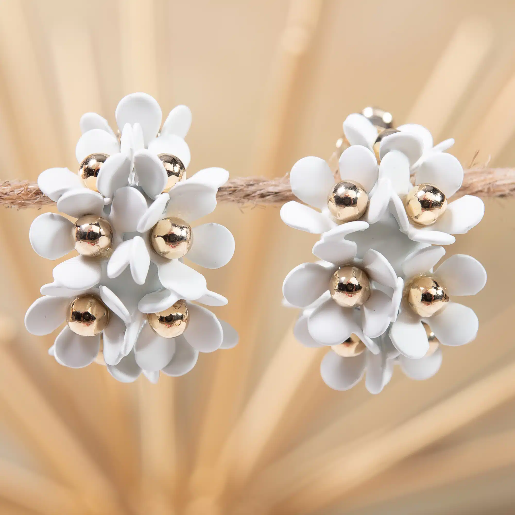 The Amanda Blu Cluster Flower Ear Hugger Earrings in White are priced at $21.99. Light at 3 oz, they offer a gentle floral touch to your style, blending comfort with charm. Ideal for daily wear, they bring a soft, elegant flair to any outfit.