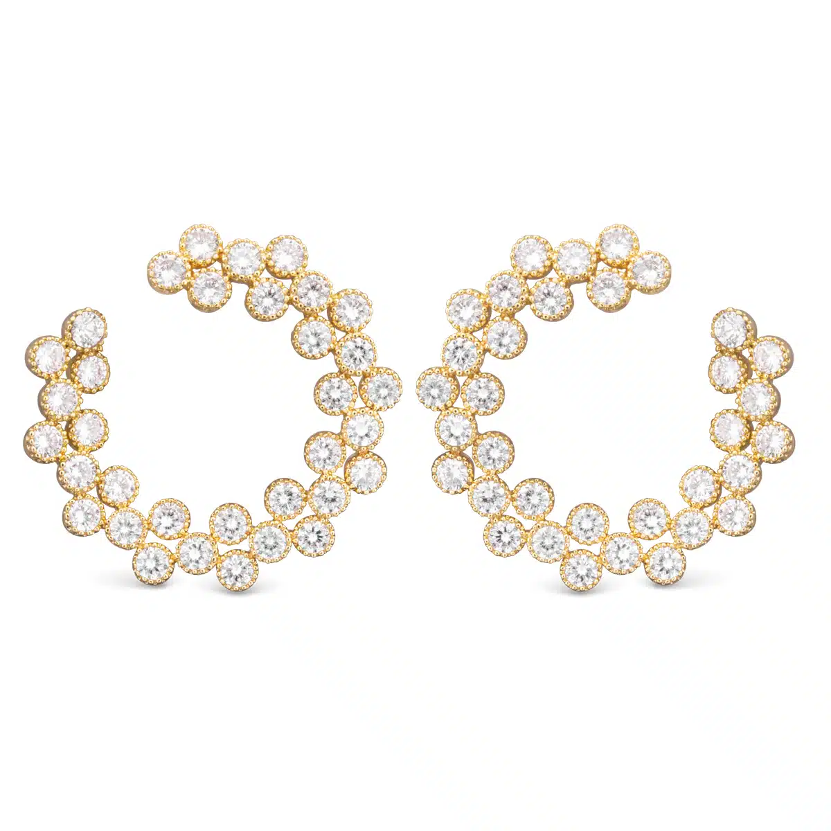 CZ Double Row Open Circle Earrings – Gold