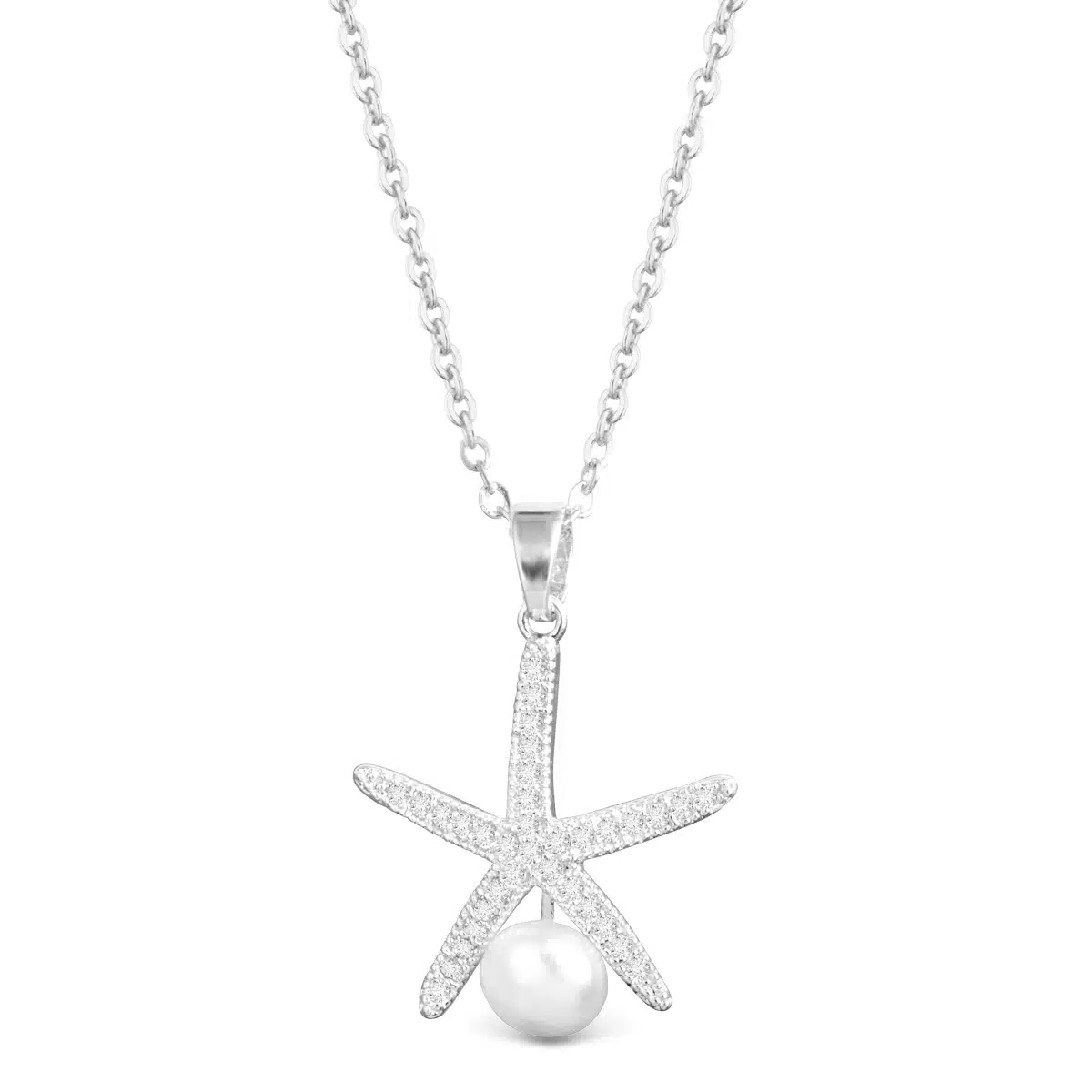 A charming starfish adorned with a luminous pearl and sparkling CZ.