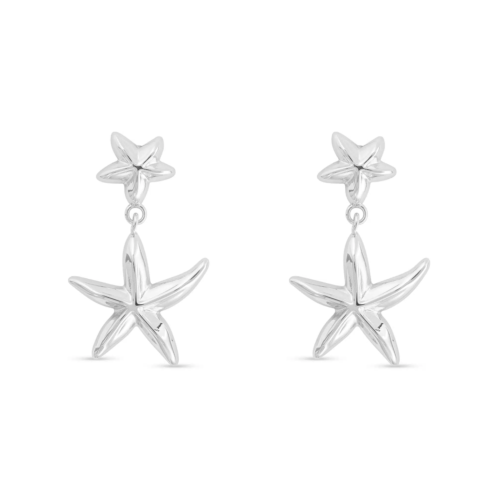 Coastal-inspired dangle earrings featuring two interconnected starfish charms with a polished finish.