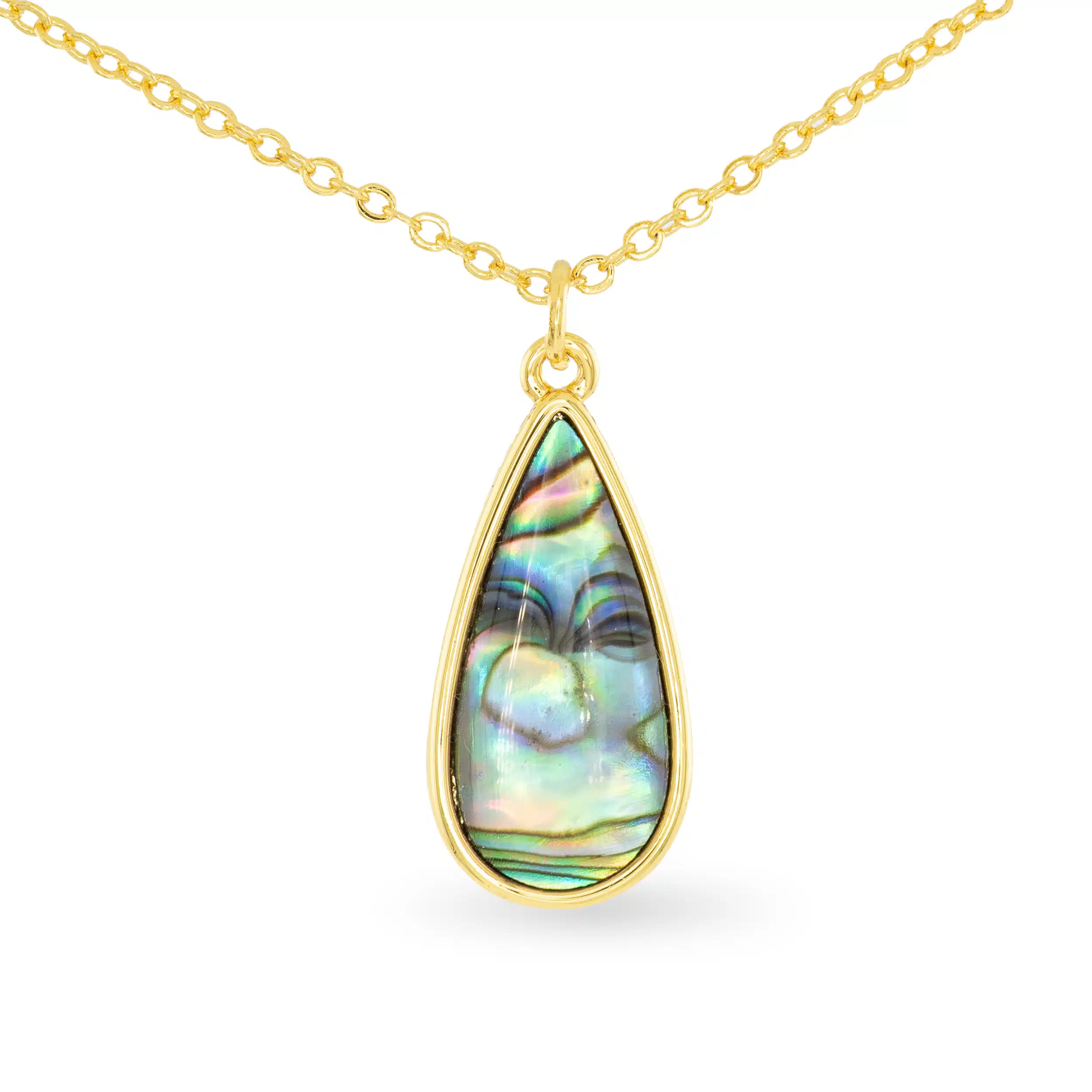 This elegant gold abalone teardrop necklace offers a classic and timeless design.