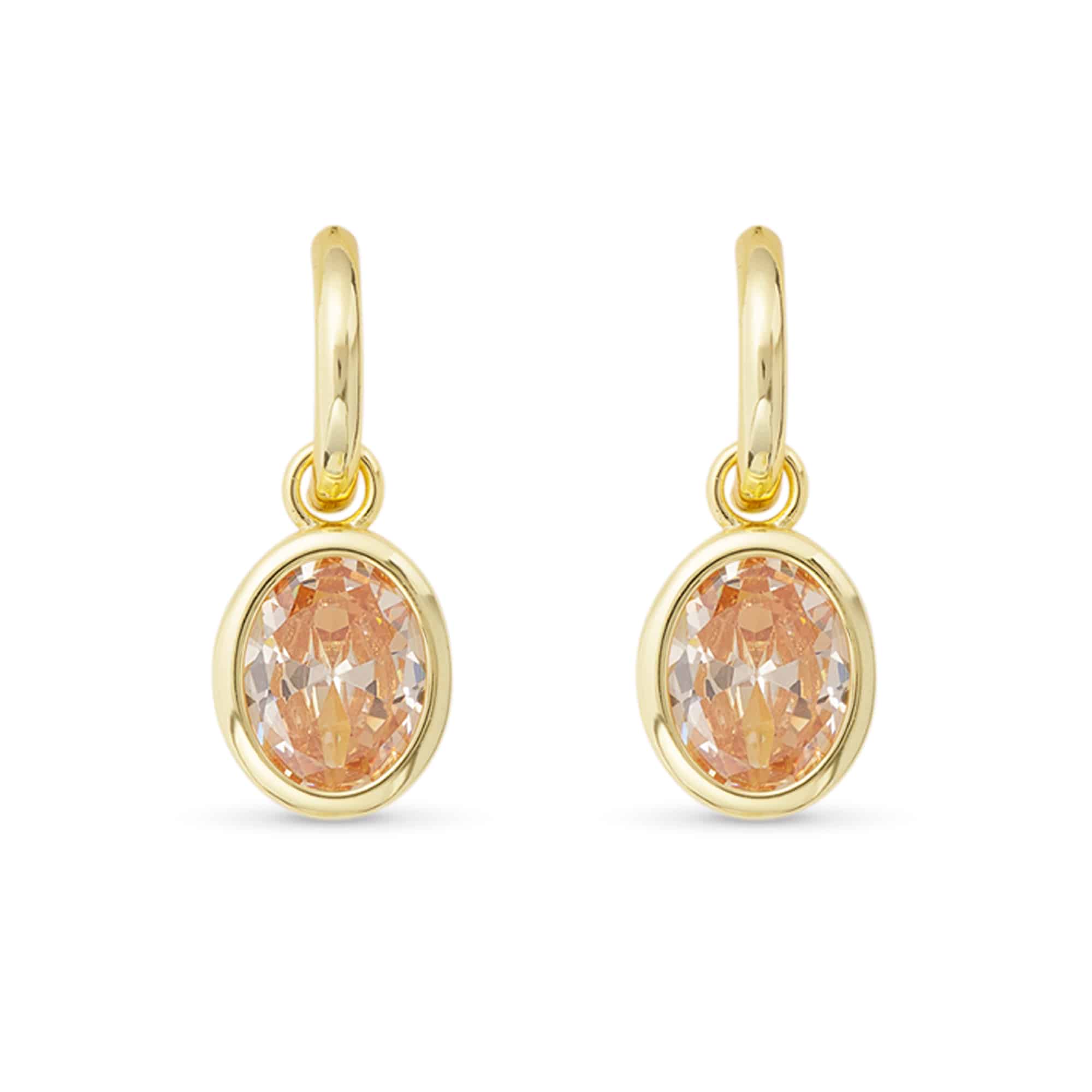 Sophisticated gold earrings showcasing a vibrant oval-cut crystal center for a touch of timeless glamour.