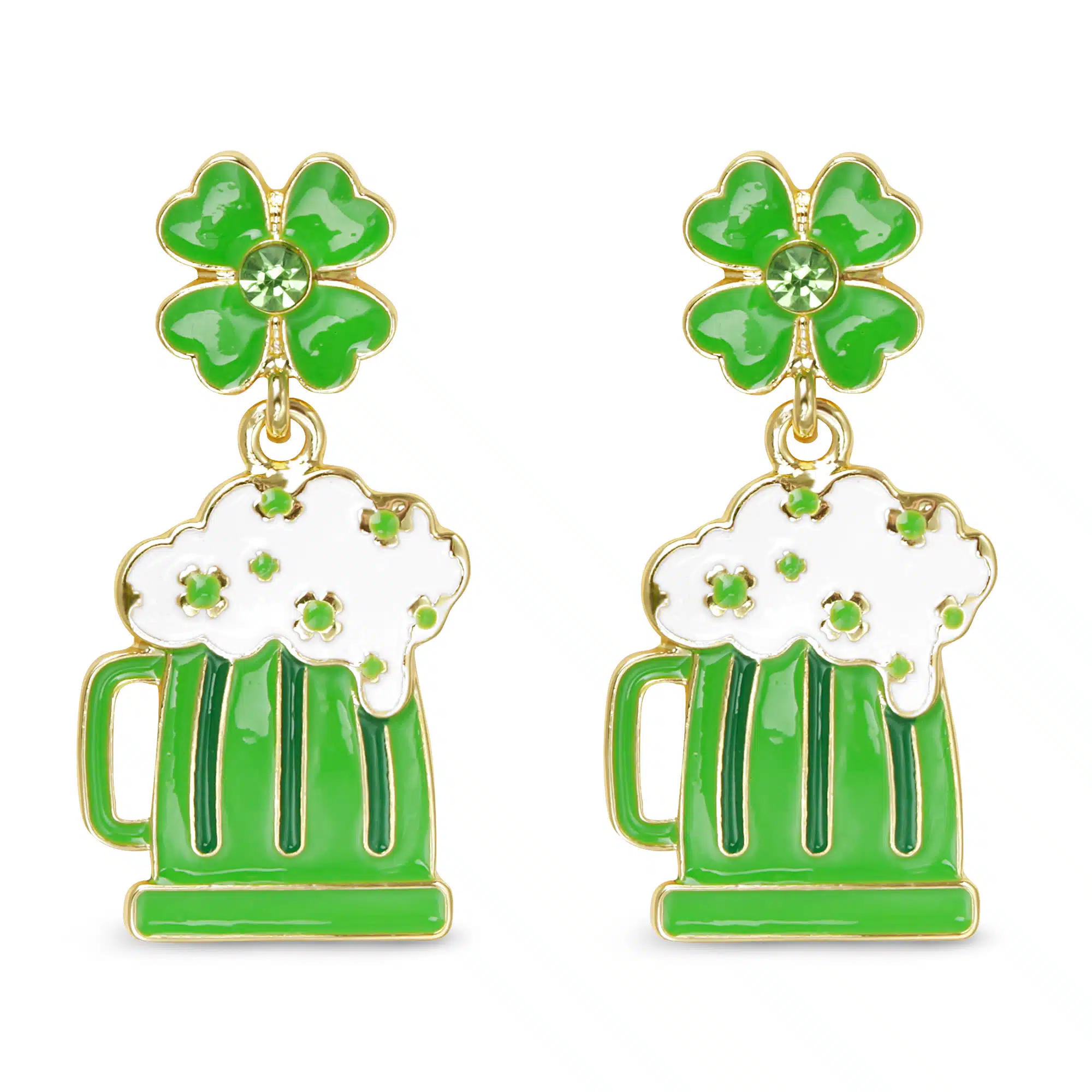 A festive duo featuring a sparkling beer mug and a lucky clover for the ultimate holiday look.
