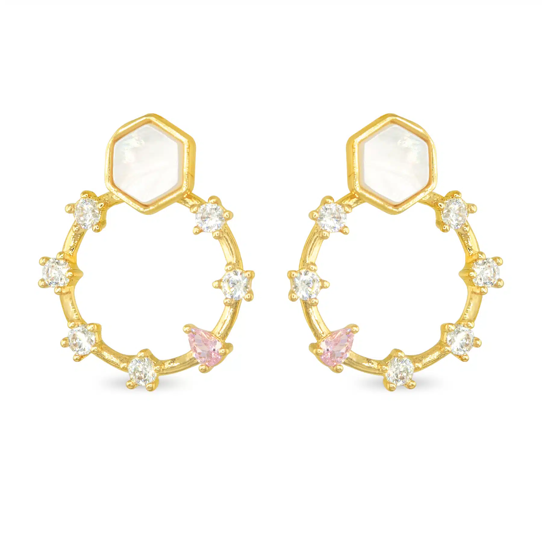 Be the first to review “Gold CZ & MOP Flat Disk Earrings”
