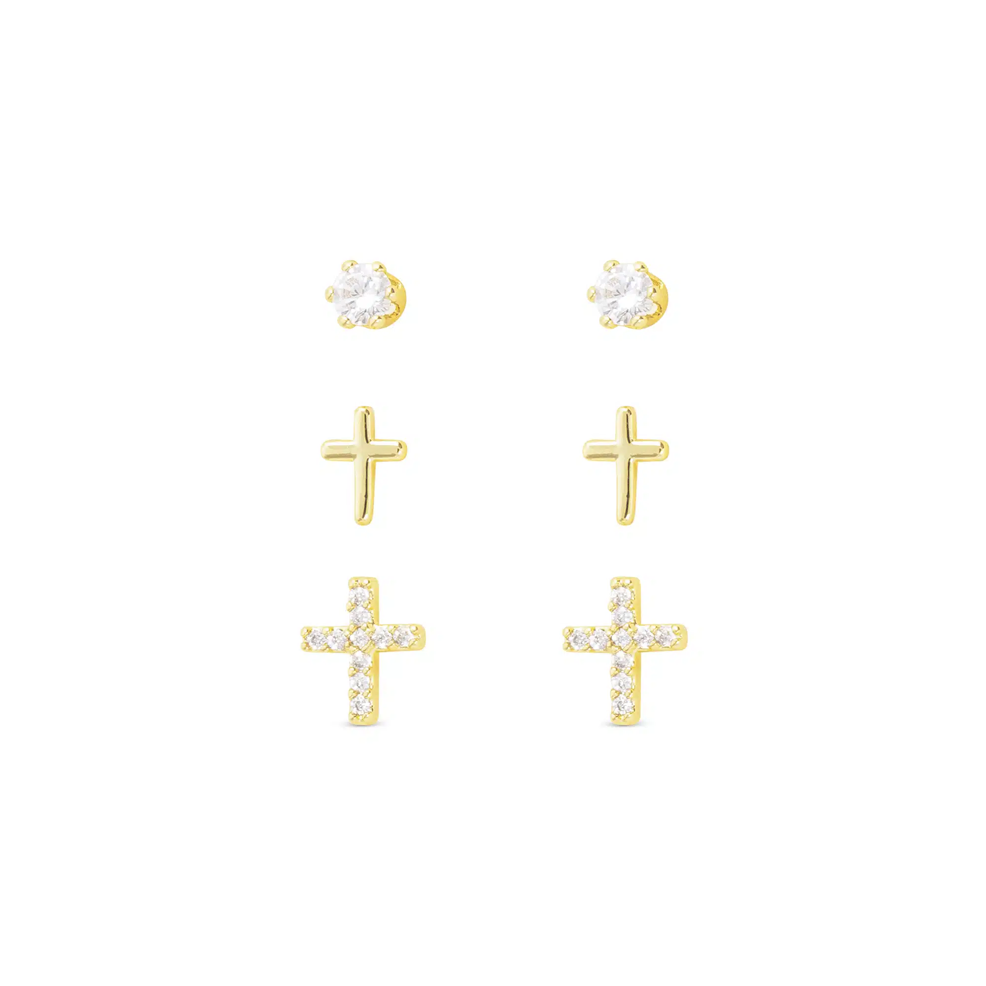 Be the first to review “Gold CZ Trio Cross with Stud Earrings”