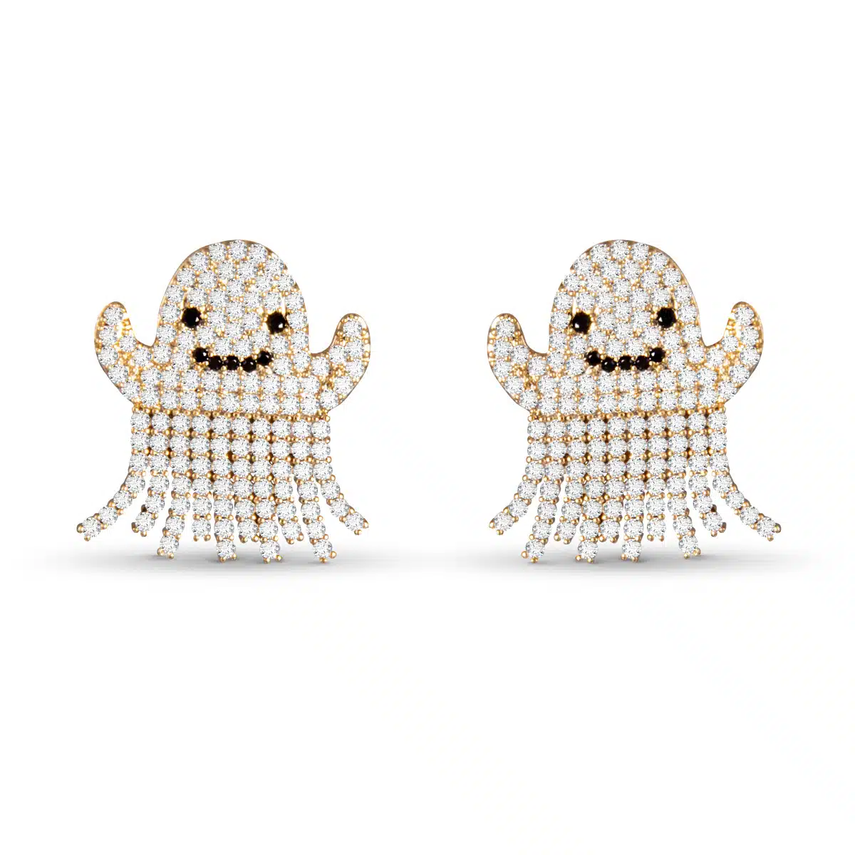 Add a touch of playful charm with these gold ghost earrings, complete with a swaying fringe design.