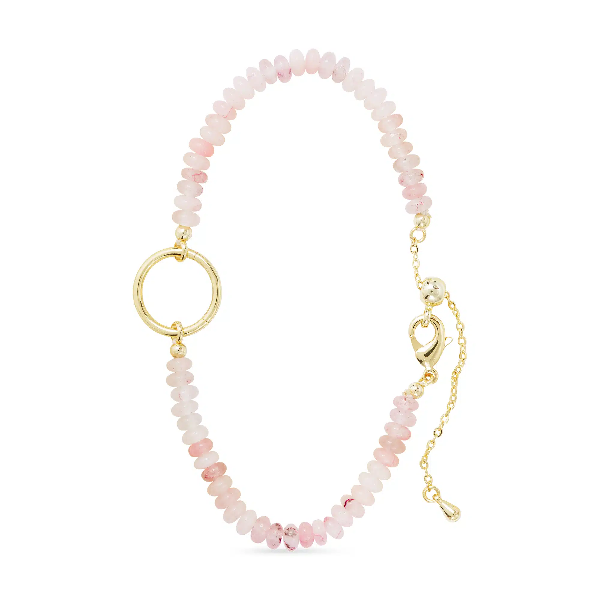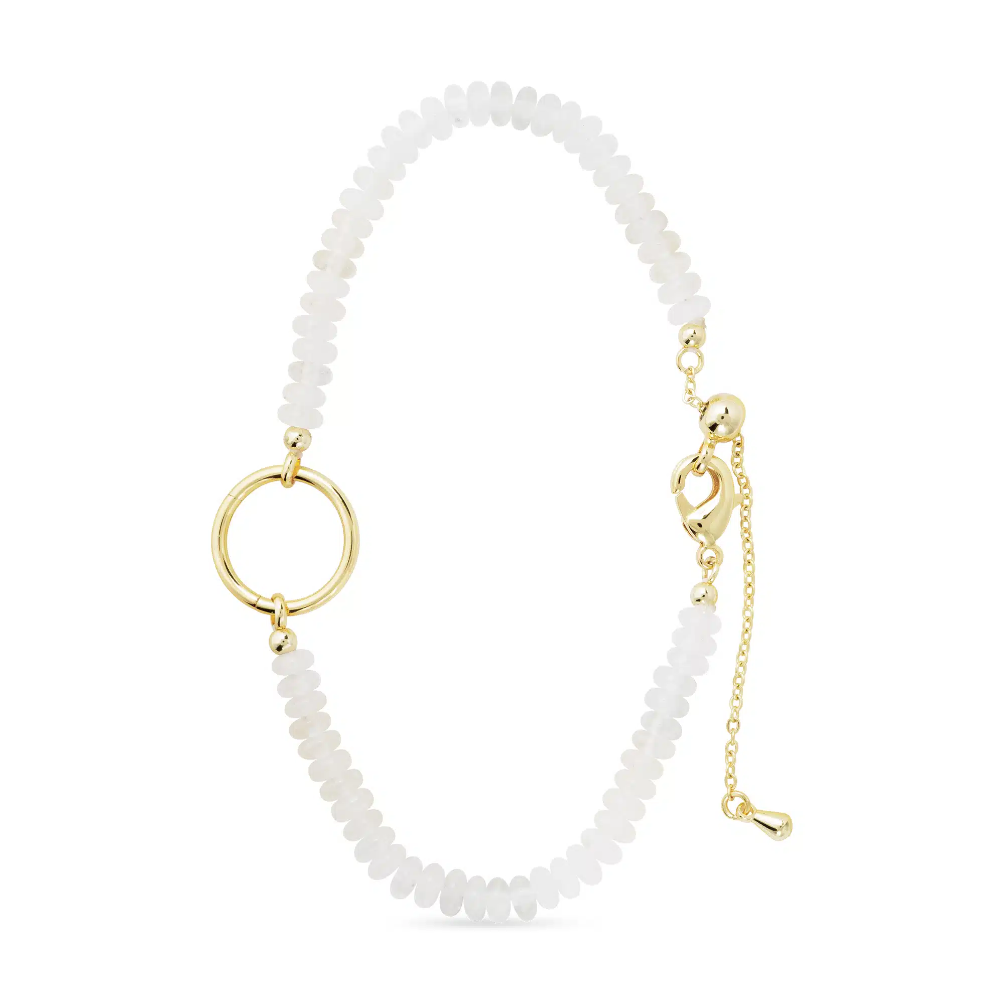 A versatile beaded bracelet with a functional gold charm clasp for easy customization.