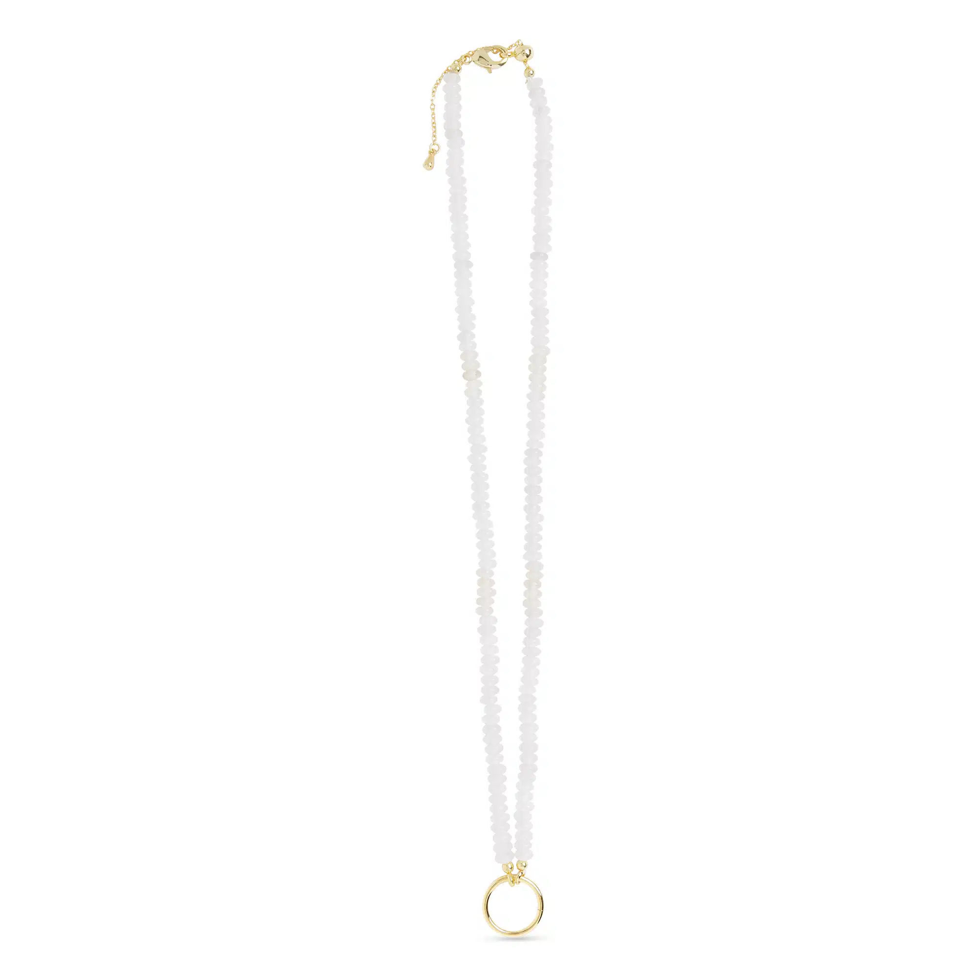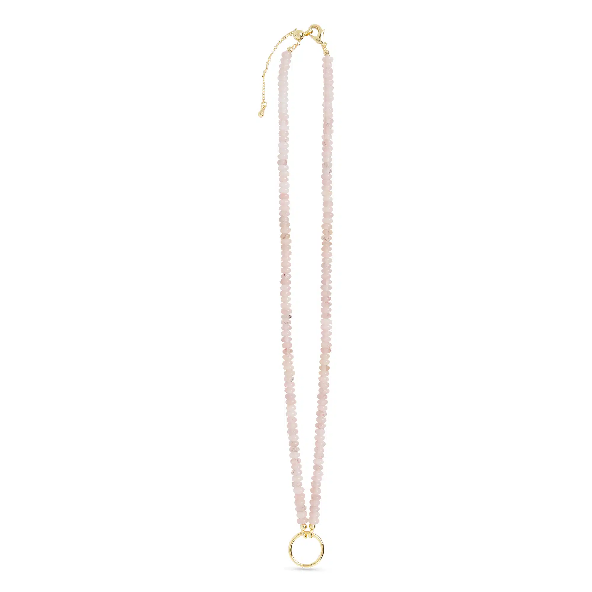 A versatile beaded necklace with a functional gold charm clasp for easy customization.