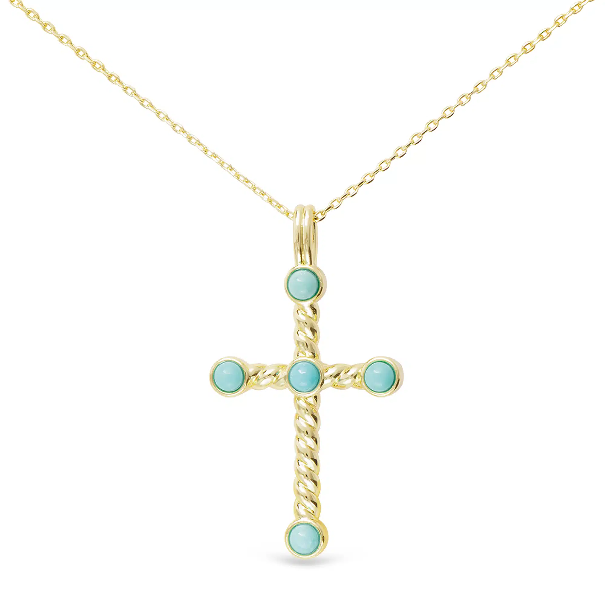Be the first to review “Gold Twist and Turq Cross Necklace”