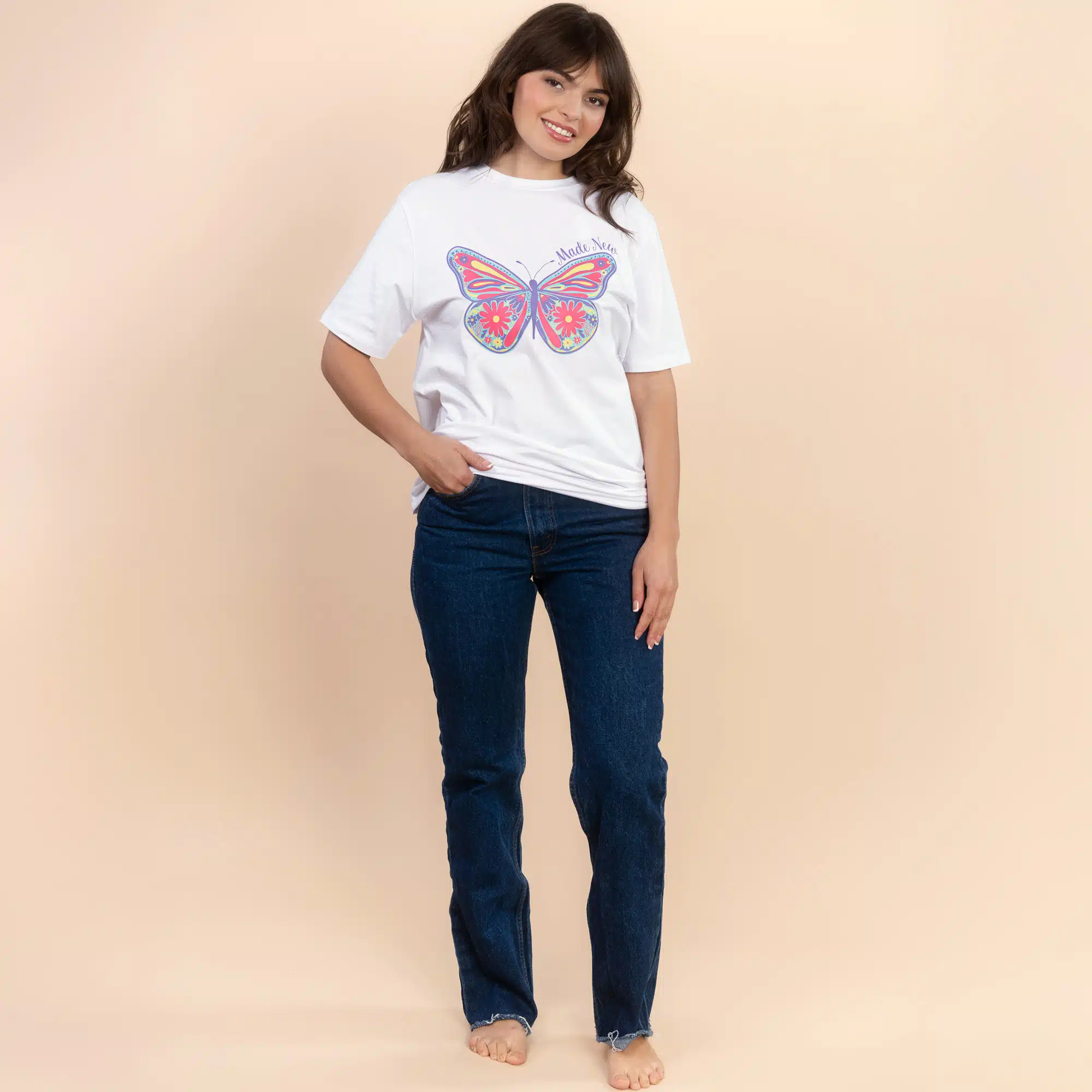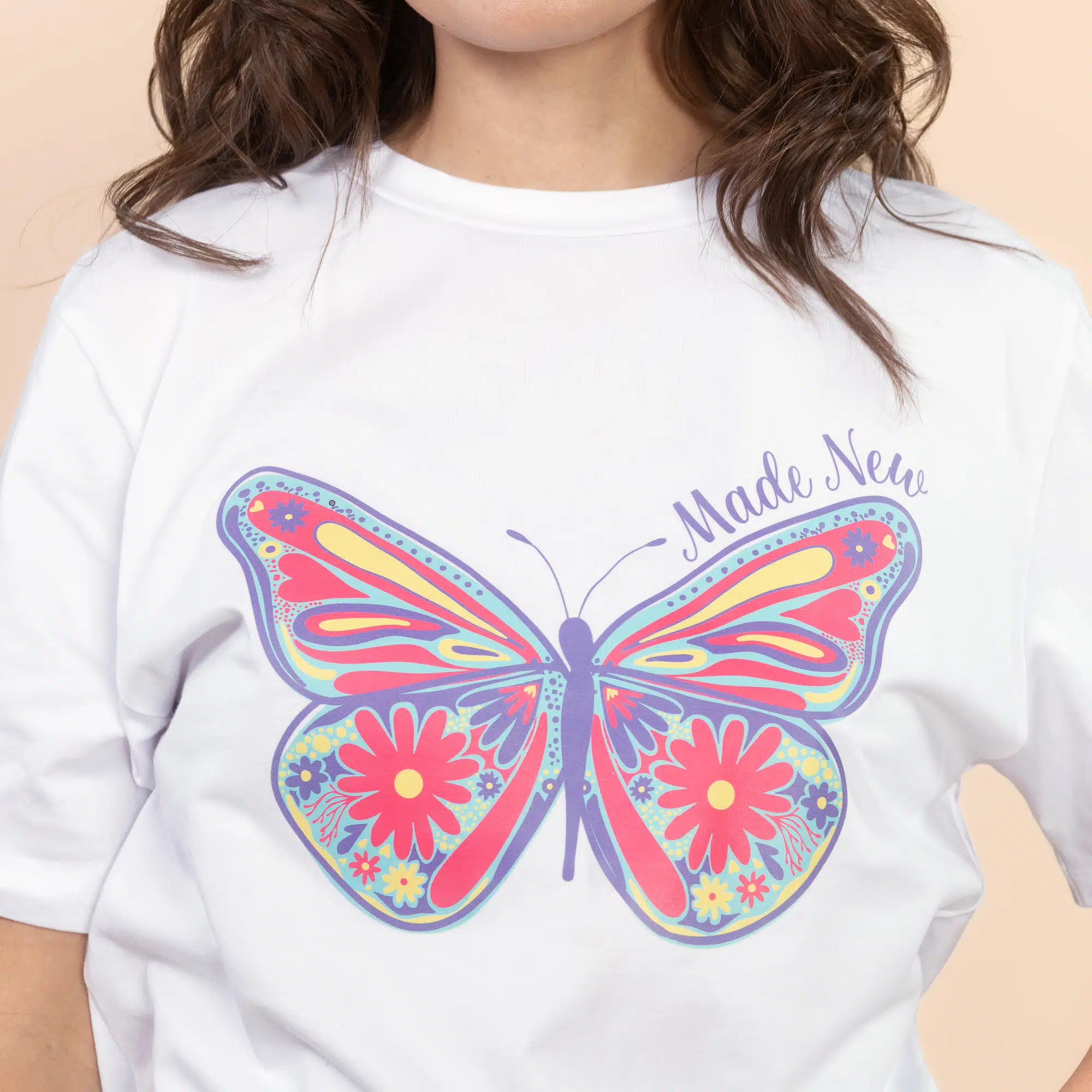 Celebrate a fresh start and the beauty of spring in our ‘Made New’ premium cotton butterfly tee!