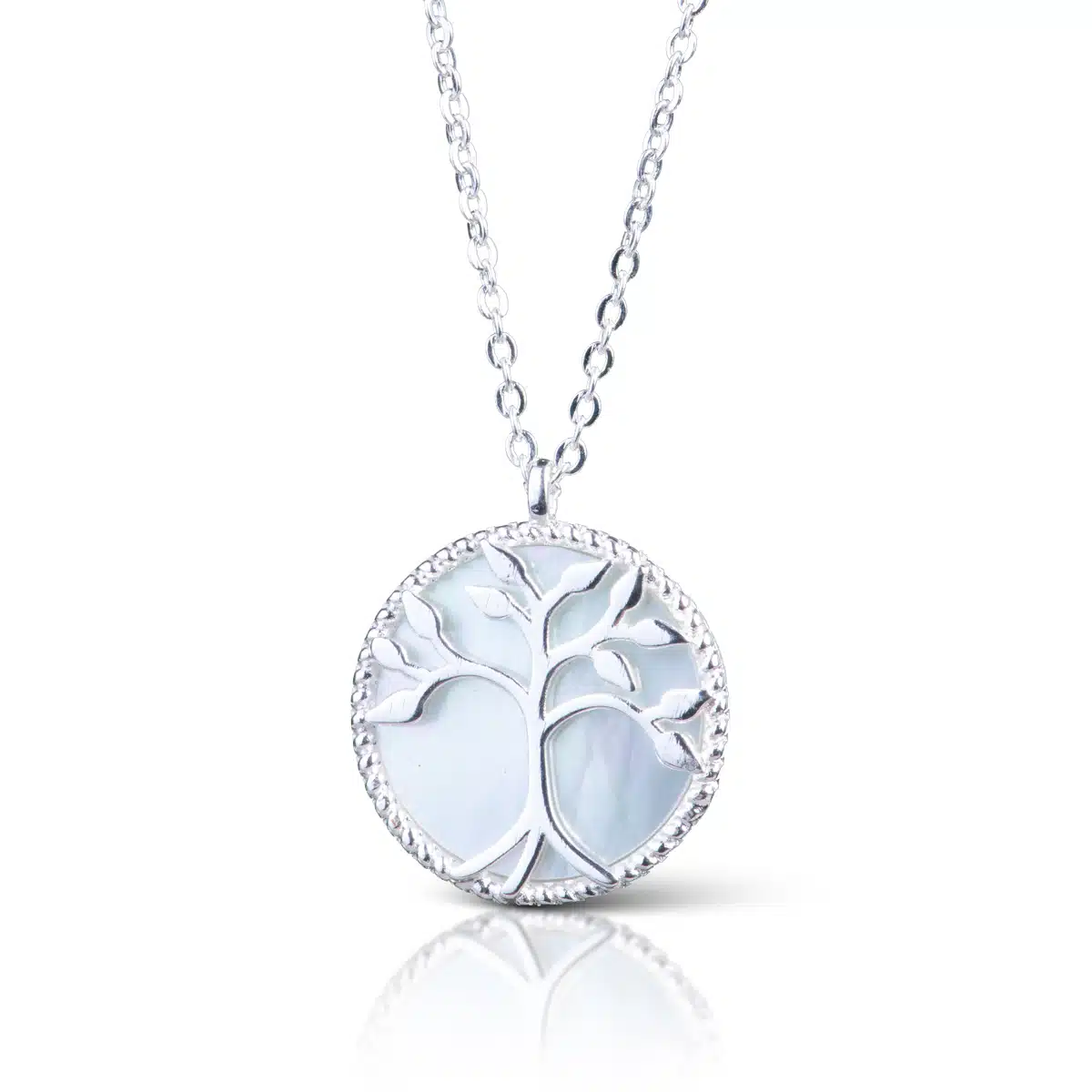 Tree necklace crafted in silver with luminous Mother of Pearl. A charming accessory that adds a touch of nature to your look.