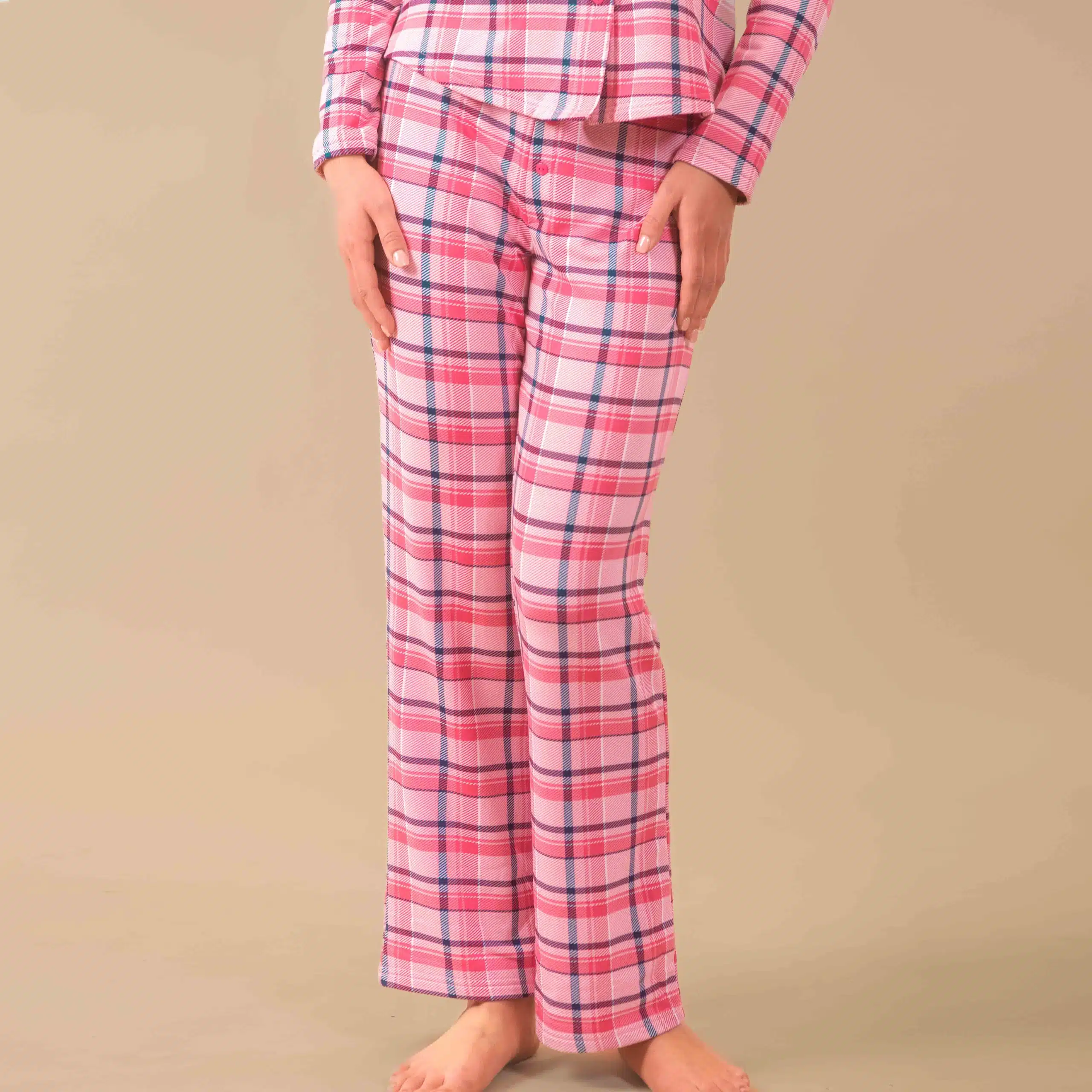 Unwind in our chic ‘Navy & Pink’ Plaid Cloud Plush Pajama Pants.
