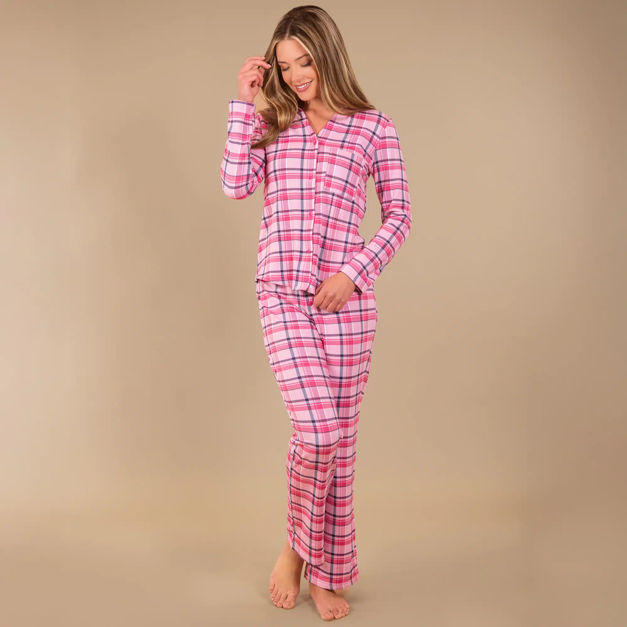 Complete the Look: ‘Navy & Pink’ Plaid Pajama Top