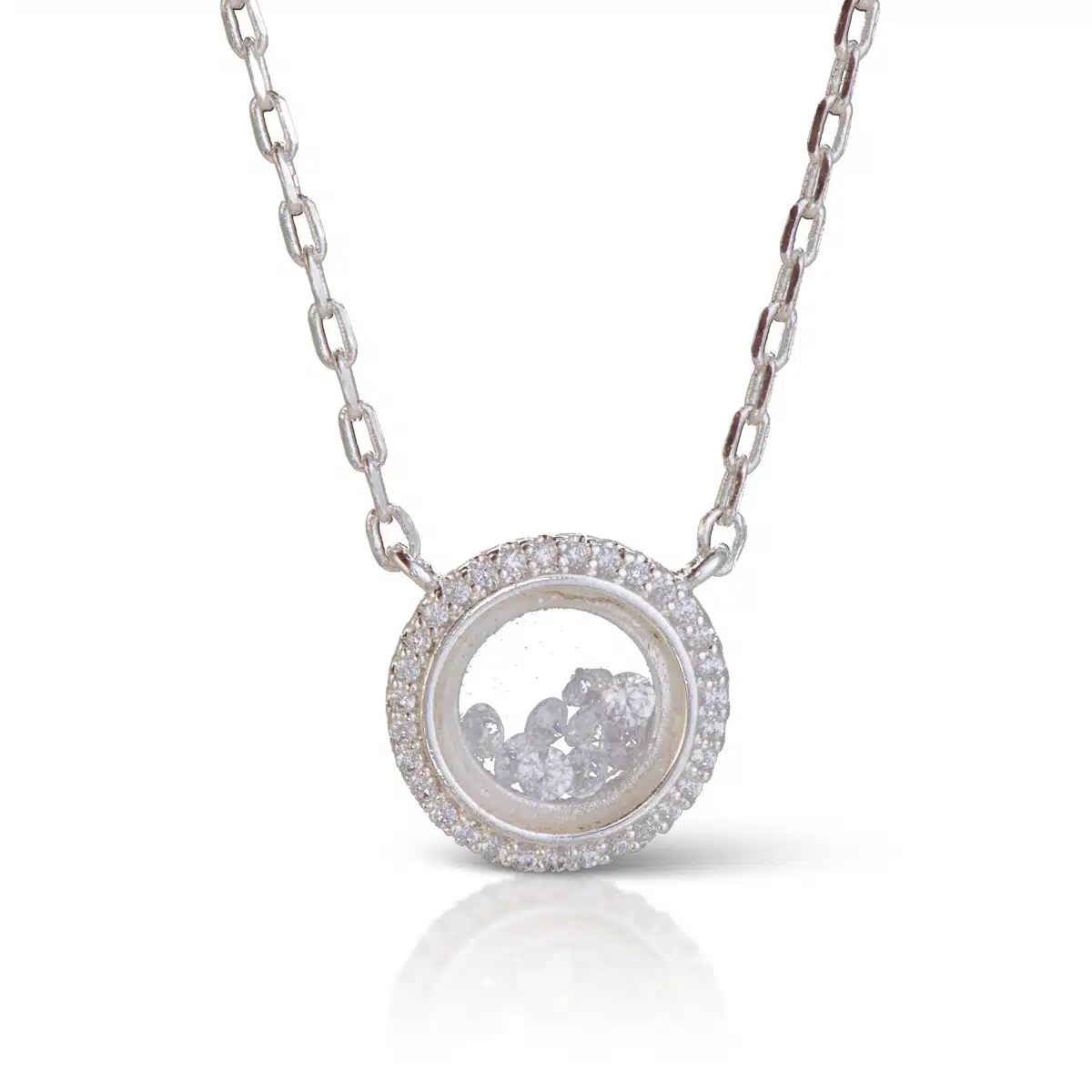 A modern open ring design featuring a free-moving, sparkling cubic zirconia.