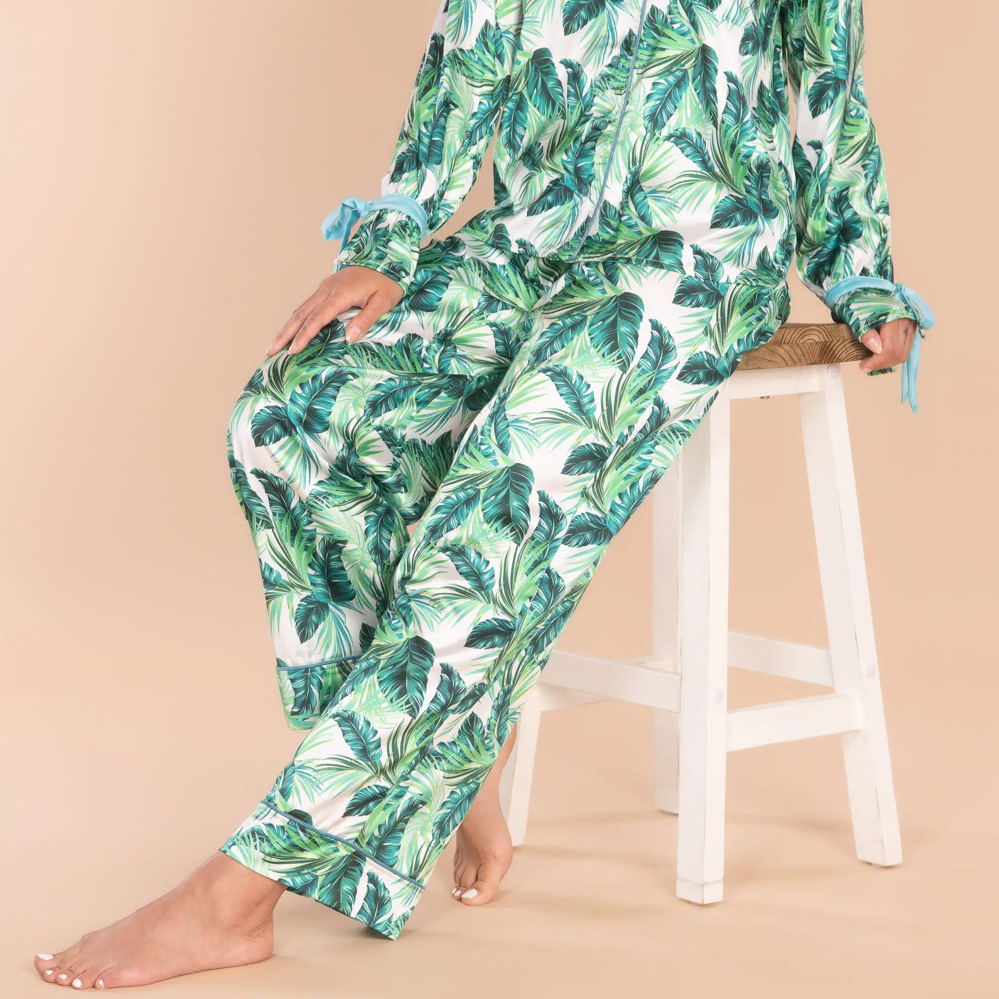 Be the first to review “Royal Palm Satin Pajama Pants | Silk Green Leaves PJ Bottoms”