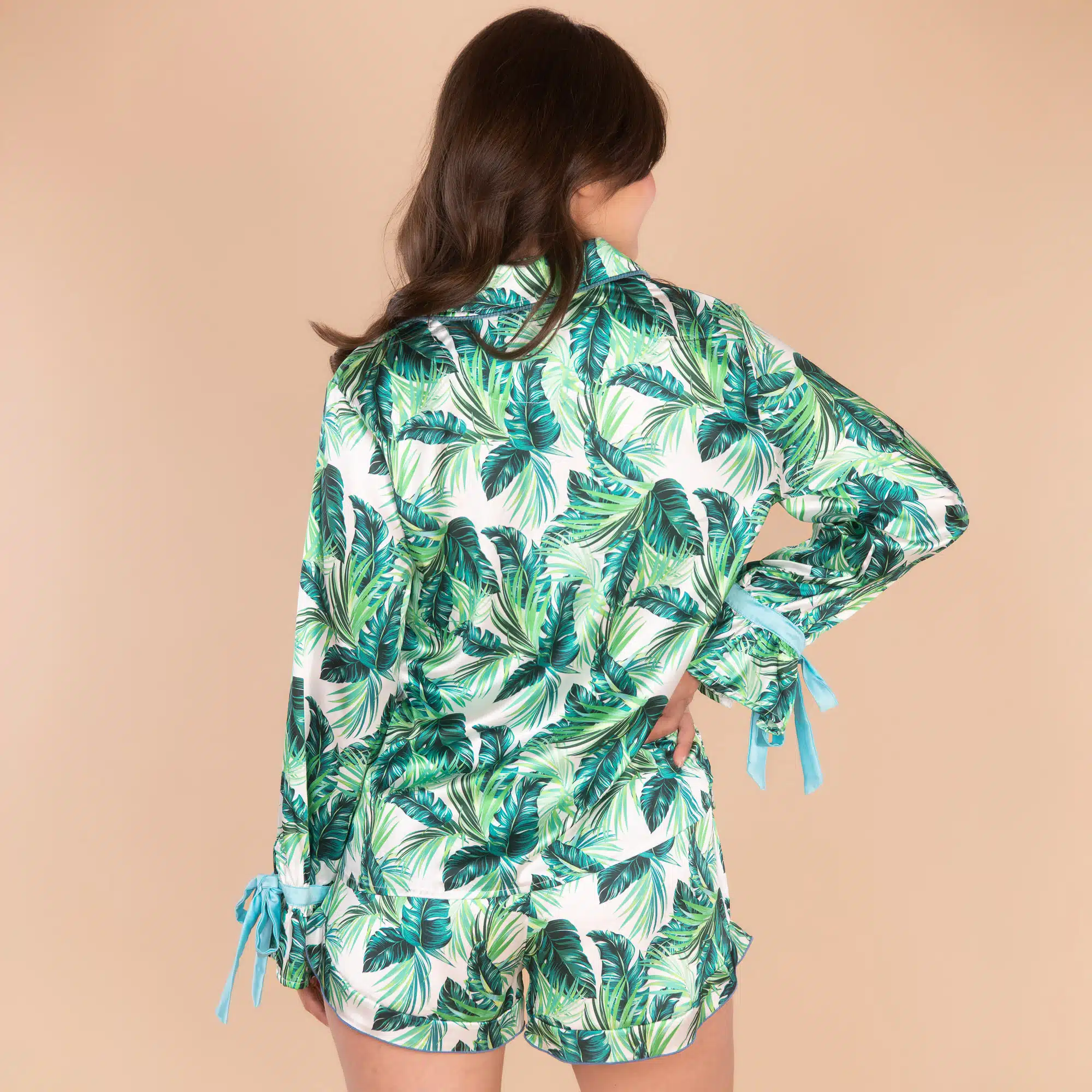 Stay cool and effortlessly chic in our beautiful ‘Royal Palm’ satin pajama shorts!