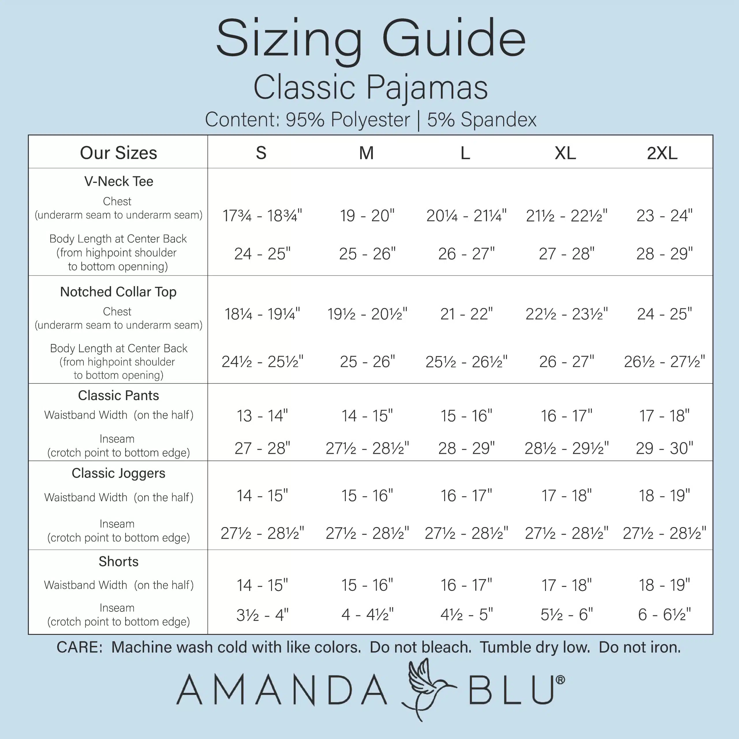 Find your perfect fit with our comprehensive size guides. Explore detailed measurements for all our pajama and loungewear styles!
